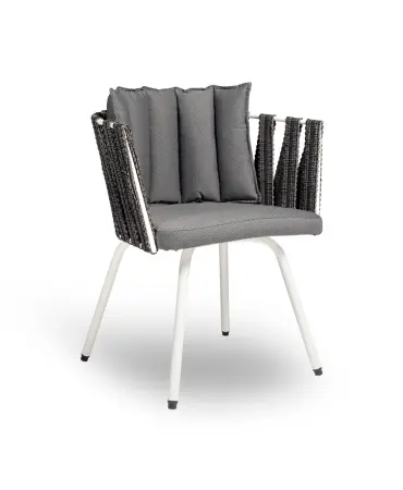 Chair with a painted steel sled-base structure. Flame-retardant and water-repellent polyester strip. Anti-slip feet. Screws made of stainless steel.