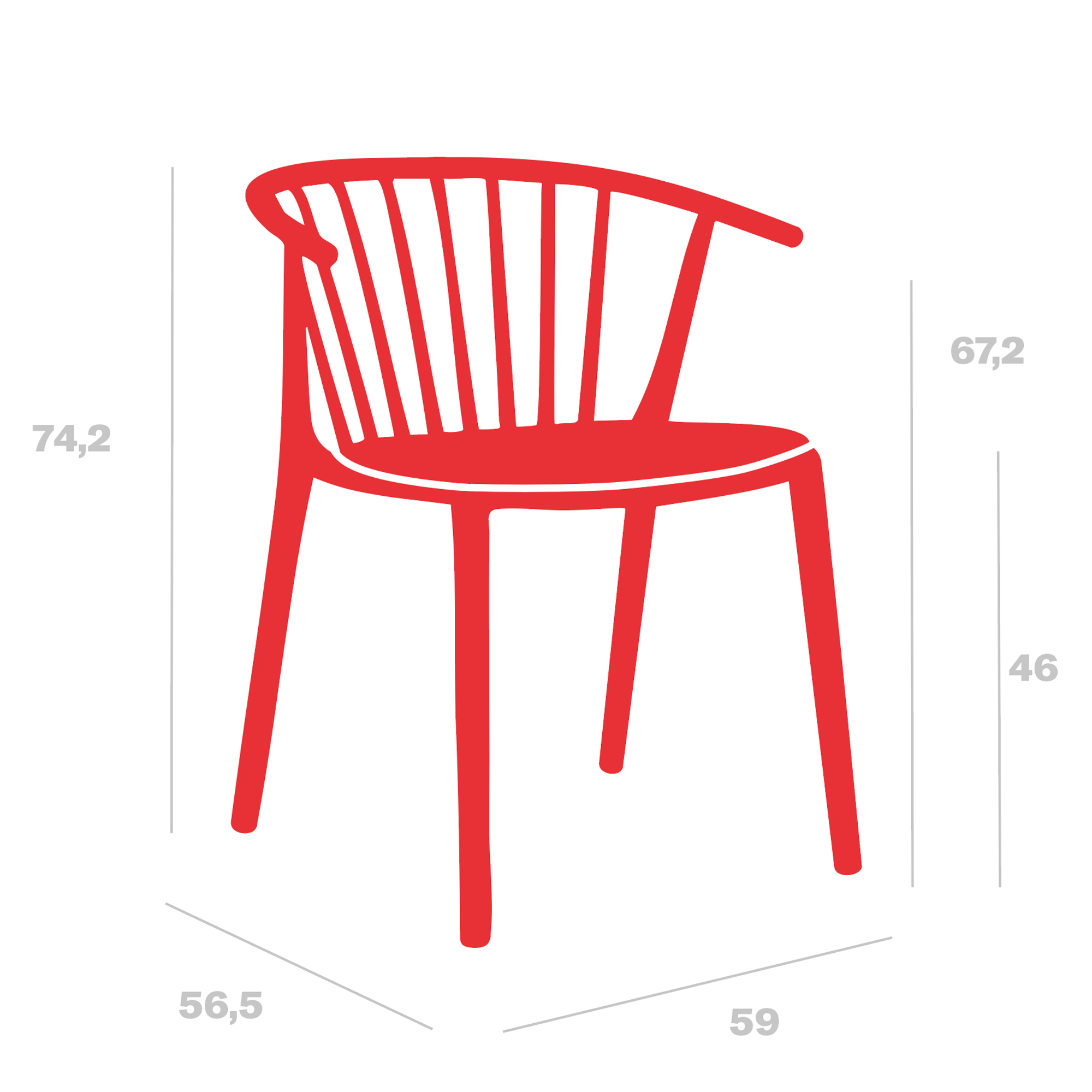 Silla con brazos para uso interior y exterior. Inyectada en fibra de vidrio con PP. Apilable. Protección UV. Peso neto 4,4 kg.